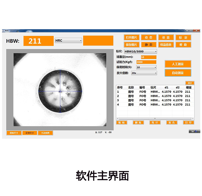 • 軟件功能:單件測量、批量測量、硬度換算表、數(shù)據(jù)及圖像存儲、數(shù)據(jù)庫查詢、不合格值報警