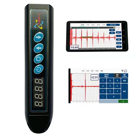 筆式電磁超聲測厚儀是一款超小型、無需聲耦合劑、非接觸式厚度測量的儀器,可實(shí)現(xiàn)金屬或?qū)Т判晕镔|(zhì)的厚度測量。