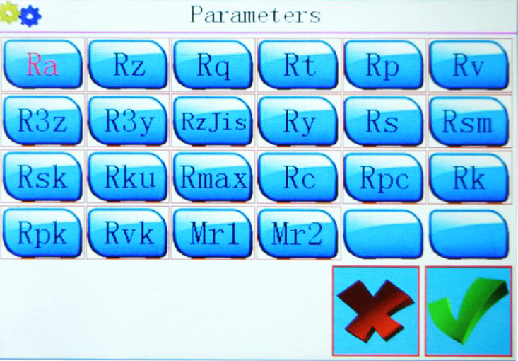 Ra、Rz、Rq、Rt、Rp、Rv、R3z、R3y、RzJis、Ry、Rs、Rsm、