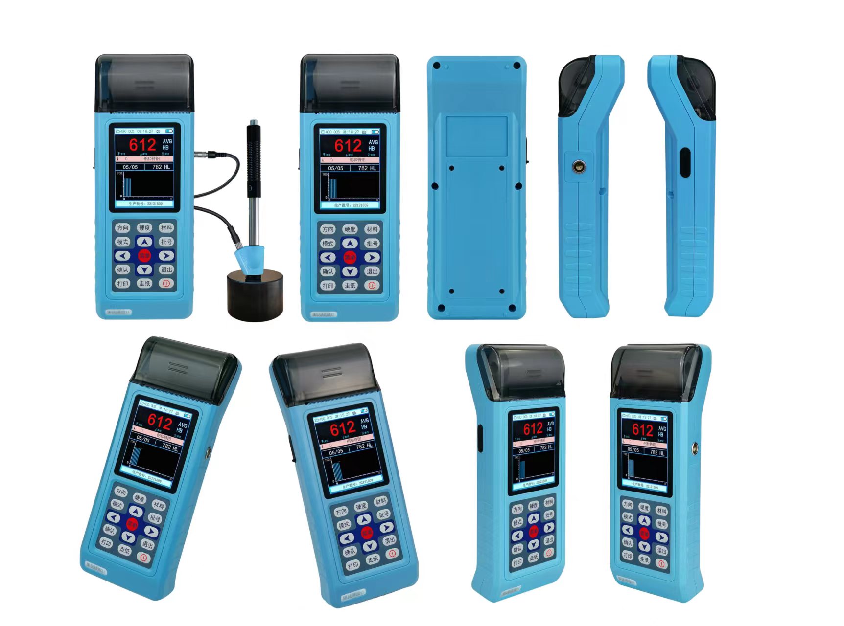 l 可存儲510個文件,每個文件46~215組(沖擊次數(shù)32~1)單次測量值、平均值、測量日期、沖擊方向、次數(shù)、材料、硬度制、等信息。